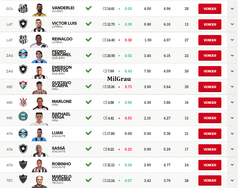 Mais escalados | Dicas da rodada | Cartola 2025
