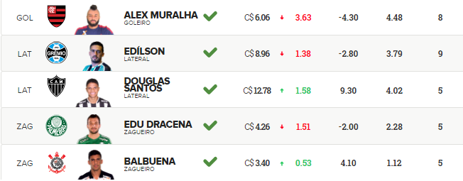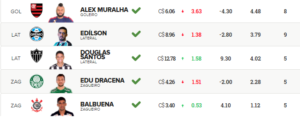 Mais escalados | Dicas da rodada | Cartola 2025