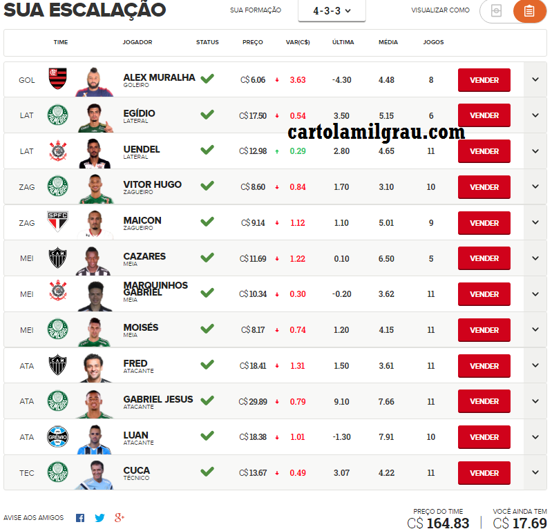 Mais escalados | Dicas da rodada | Cartola 2025
