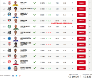 Mais escalados | Dicas da rodada | Cartola 2025
