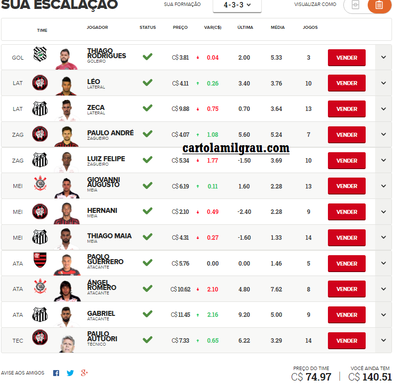 Mais escalados | Dicas da rodada | Cartola 2025